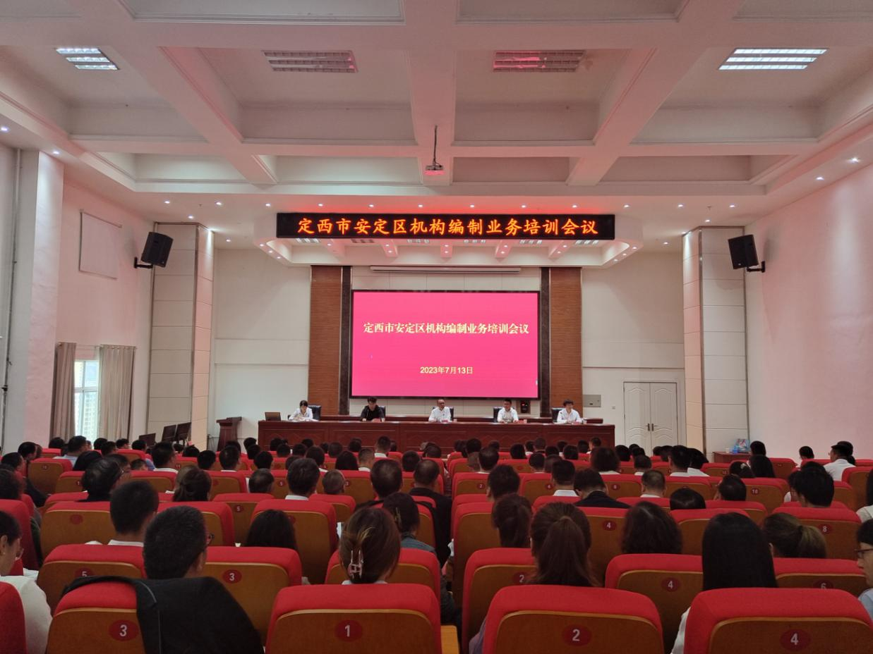 为进一步贯彻落实机构编制各项政策法规,推进“三抓三促”行动走深走实,全面提升全区机构编制管理水平,7月13日,安定区委编办召开全区机构编制业务培训会。市事业单位登记管理局副局长范文出席会议并讲话,全区各级各类机关事业单位分管领导和负责机构编制工作的业务骨干及区委编办全体干部,共计400余人参加。
