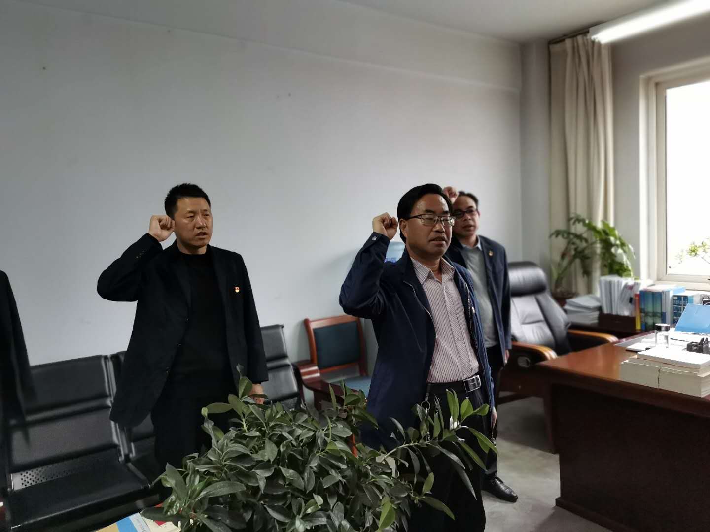 全体党员面对党旗,举起右拳,一起重温了入党誓词。